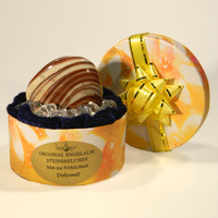 gebettet auf reinsten Kristallen in romantischer Geschenkbox"Ich komme aus dem Land der lichtvollen Tiefe und habe eine Botschaft zu den Themen ? Fördert die Selbstverwirklichung? spielerisches Erreichen von Aufgaben? ausgleichend & stabilisierend? fördert positive Einstellung zum LebenNimm mich in Deine Hand, betrachte mich oder trage mich bei Dir und öffne Deine Sinne!"Steinseelchen - die Seelenflüsterer aus der Welt der lichtvollen Tiefe!Steinseelchen sind eine besondere Gruppe energetisierter Edelsteine. Es sind Meditationssteine zu den 33 Themen des Lebens. Mit ihrer Hilfe erlangen Sie leichter den Zugang zu Ihren eigenen Herzensweisheiten. Steinseelchen sind individuelle und sehr persönliche Helfer für den Zugang zu den unbewussten Teilen der Seele.So wie es Berufungen und Berufe der Menschen gibt, sind auch Edelsteine, Gesteine und Mineralien in ihrer Bestimmung verschieden. Es gibt Erdenhütersteine, Wassersteine, Heilsteine, Medizinalsteine, Deko- und Bausteine? etc. und es gibt auch Meditationssteine - die Seelenflüsterer aus der Welt der Mineralien. Meditationsanleitung und Tipps? Meditieren Sie regelmäßig - möglichst jeden Tag.? Schaffen Sie sich einen ruhigen Platz, wo Sie ungestört meditieren können.? Wenn Sie sitzen, finden Sie eine für Sie bequeme Haltung heraus - und sorgen Sie dafür, dass Sie Ihre Wirbelsäule sanft aufrichten.? Legen Sie vorher fest, wie lange Sie meditieren wollen - und halten Sie diese Zeit durch, egal wie rastlos oder gelangweilt Sie werden.? Vergegenwärtigen Sie sich vor der Meditation kurz das Thema des Steinseelchens.? Bevor Sie beginnen, atmen Sie einige Male tief durch. Entspannen Sie Ihren Körper bewusst bei der Ausatmung.? Lassen Sie alle Erwartungen los. Alles ist wie es ist. Sie sind die(der), die(der) SIE SIND!? Seien Sie geduldig, und gehen Sie sanft mit sich selbst um.? Zusätzlich können Sie Ihr Steinseelchen in der Nacht einfach auf das Nachtkästchen oder unter das Kopfkissen legen oder Sie halten Sie es vor dem Einschlafen kurz fest....? ...und stecken Sie Ihr Steinseelchen einfach ab und zu in Ihre Hosentasche oder tragen es einfach bei sich. Haben Sie ein Steinseelchen erworben, beachten sie bitte folgende Hinweise:Das Steinseelchen ist Ihr persönlicher Zugang zu den unbewussten Teilen Ihrer Seele. Achten Sie bitte darauf, dass Niemand IHR Steinseelchen berührt. Eine Reinigung ist nicht notwendig. Bewahren Sie Ihren "Schatz" im mitgelieferten Kristallbett auf. Die Größe und das Gewicht der Steinseelchen variieren von Stück zu Stück. Die Steingröße ist für die Wirkung nicht relevant. Die Schachtelgröße beträgt ø ca. 5cm und das ø Gewicht inklusive Stein ist ca. 50g.